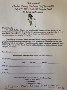 Clarion County Shriners Golf Scramble